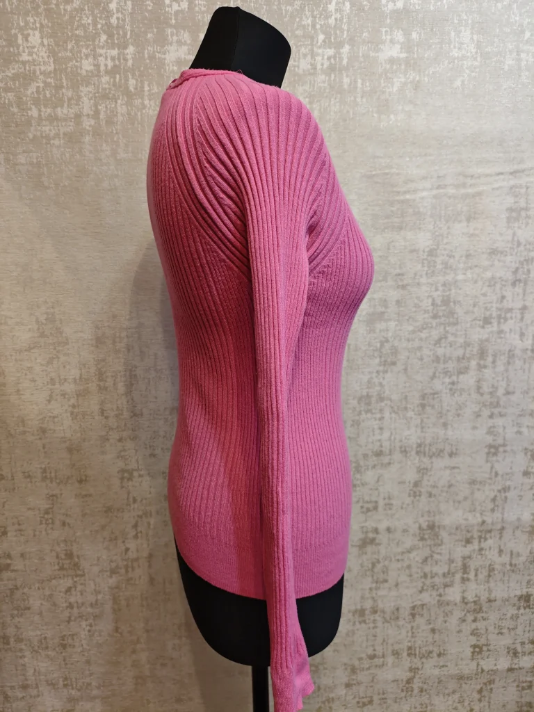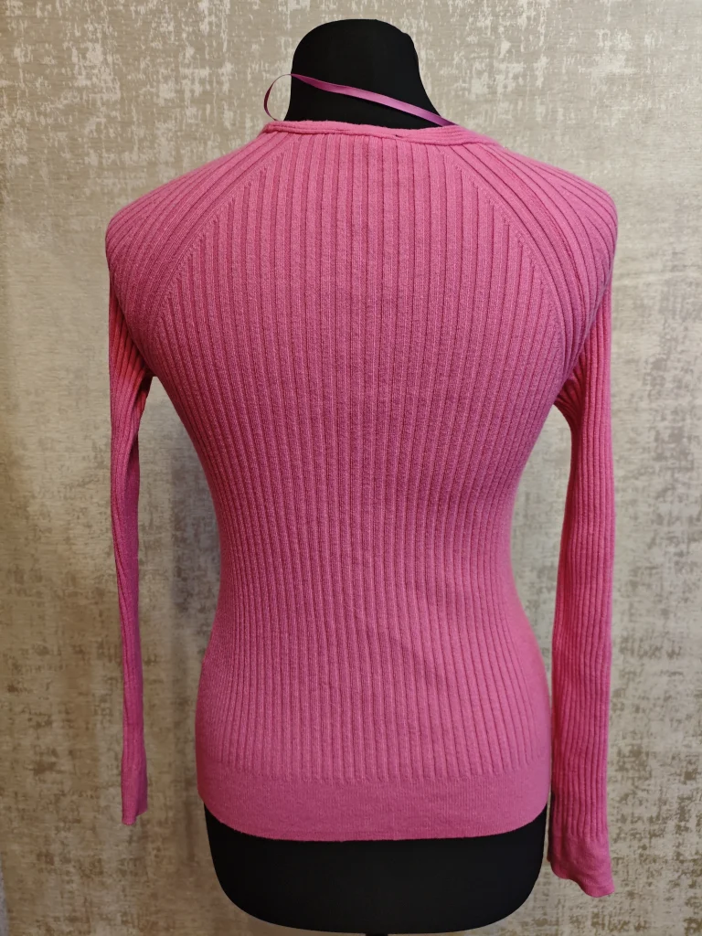 Мягкий трикотаж в рубчик, аккуратный V-вырез и приталенный силуэт подчёркивают фигуру. Отличный вариант на каждый день — красиво смотрится и с джинсами, и с юбками, и под жакет.