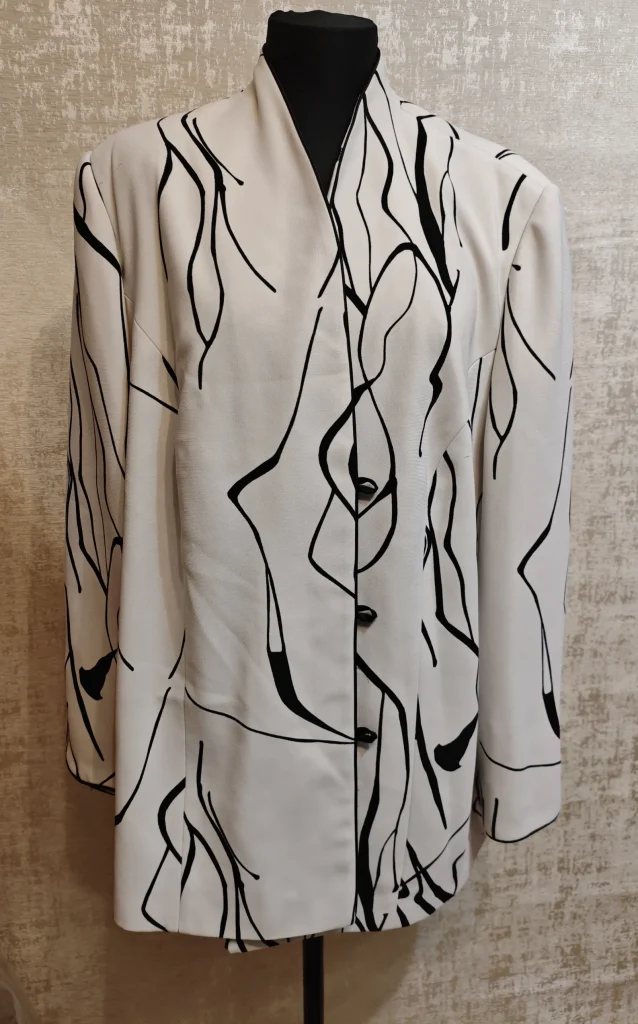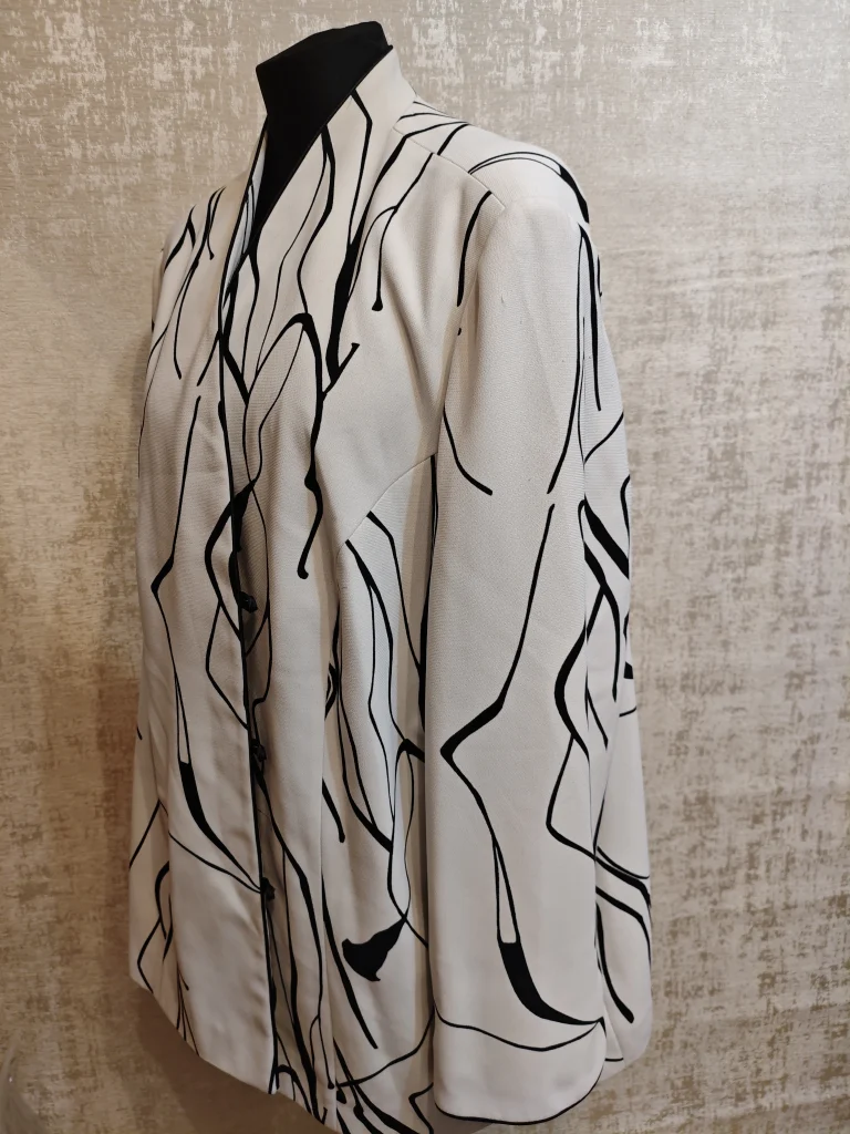 🤍 Стильный белый жакет с чёрным абстрактным принтом