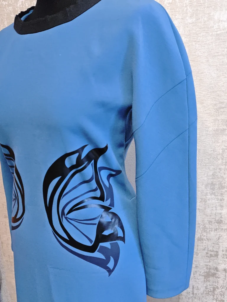 💙 Эффектное голубое платье с принтом крыльев