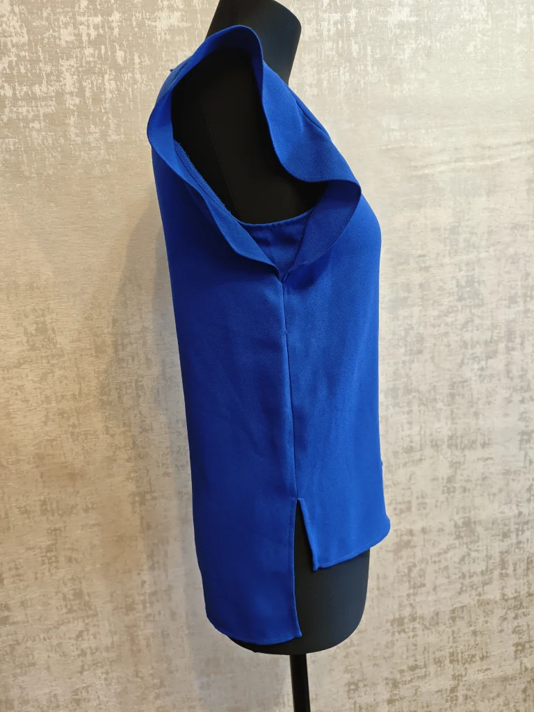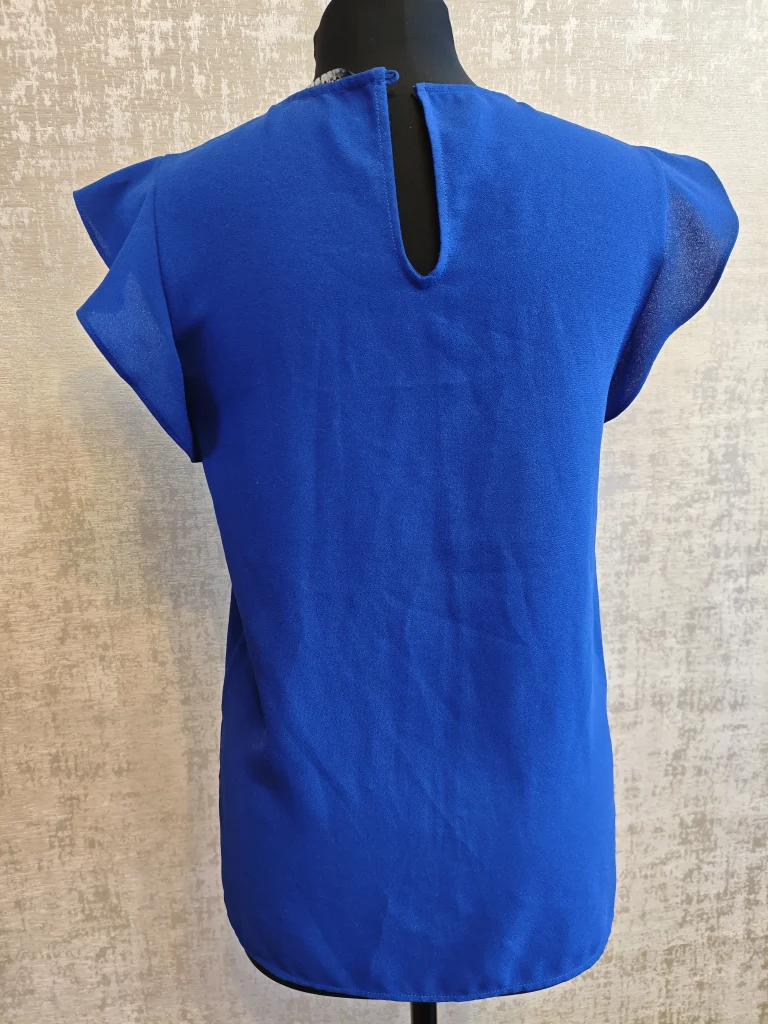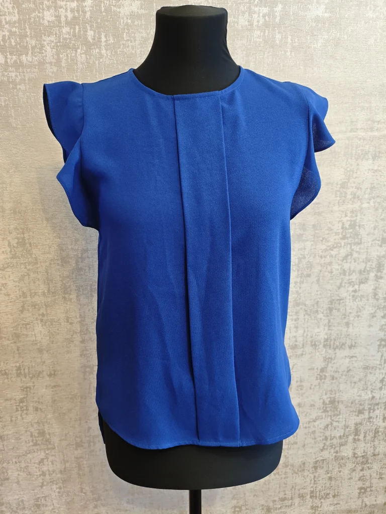 Лёгкая ткань, аккуратная складка/планка по центру и рукавчики “крылышки” — женственно и красиво. Отлично подойдёт под джинсы, белые брюки или юбку, и на работу, и на выход.