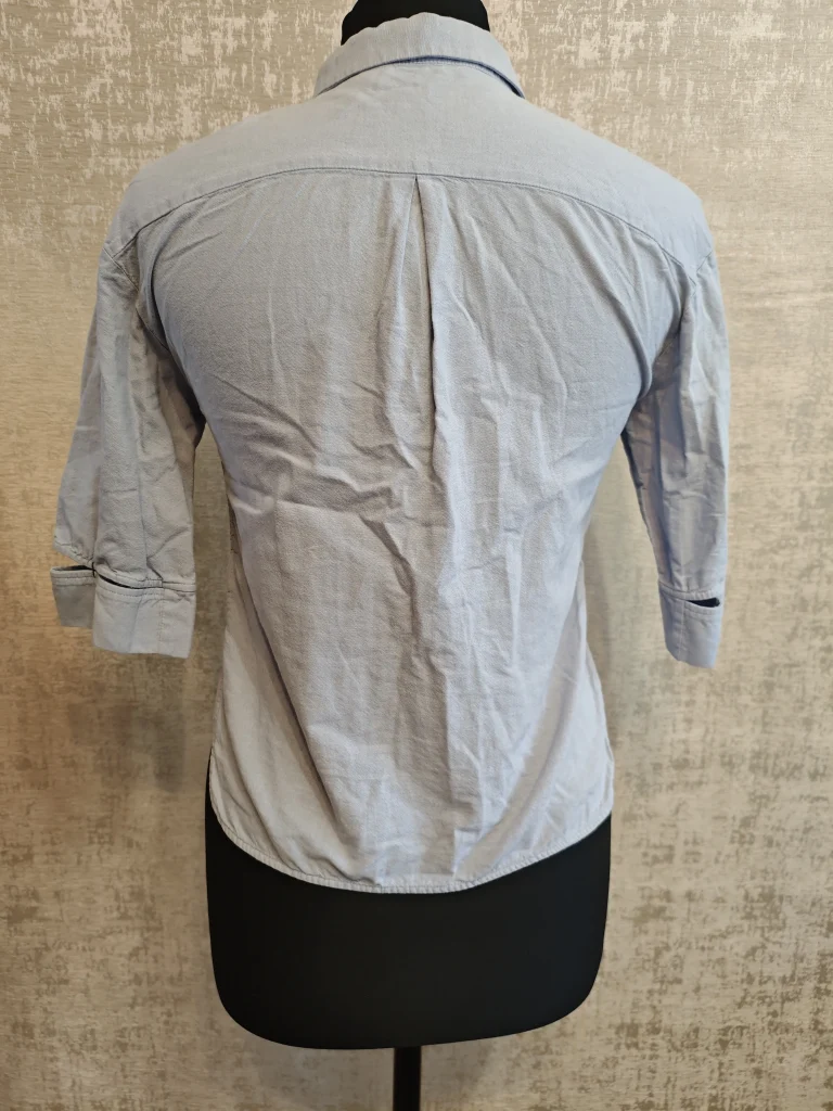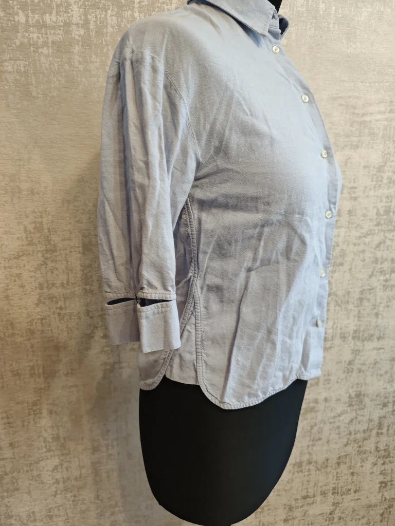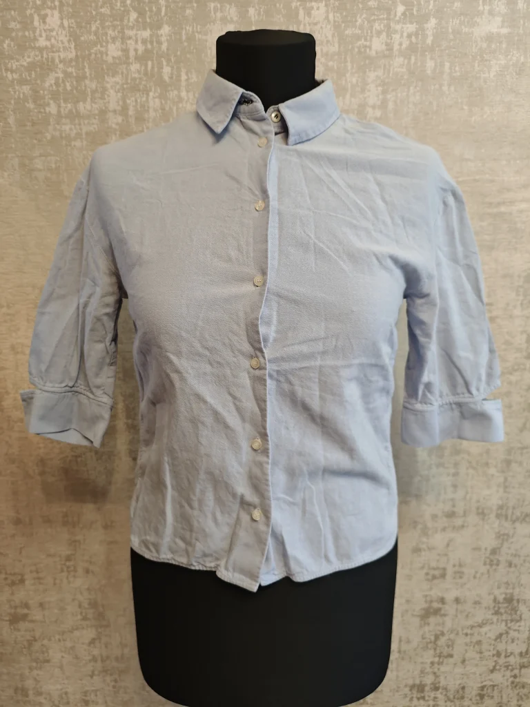 Лёгкая ткань, аккуратный воротник, пуговицы и рукав 3/4 — отлично смотрится с джинсами, брюками и юбками. Можно носить навыпуск, заправлять или завязывать узлом — вариантов море.