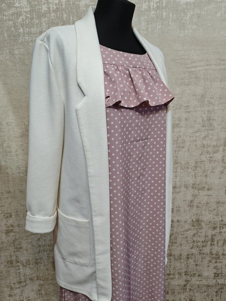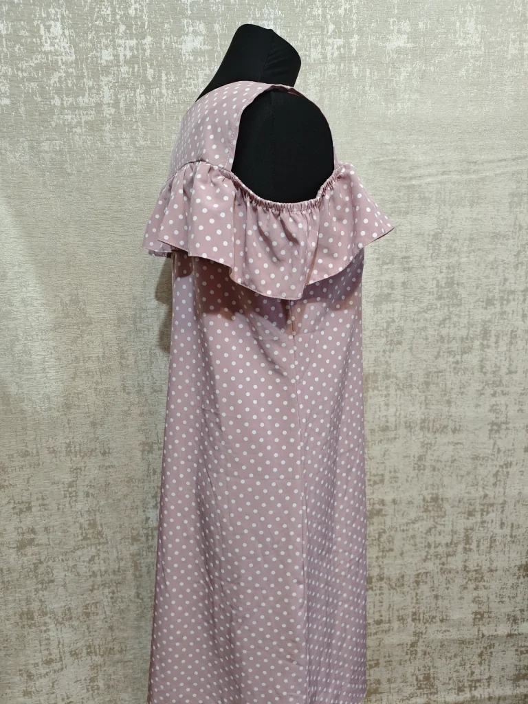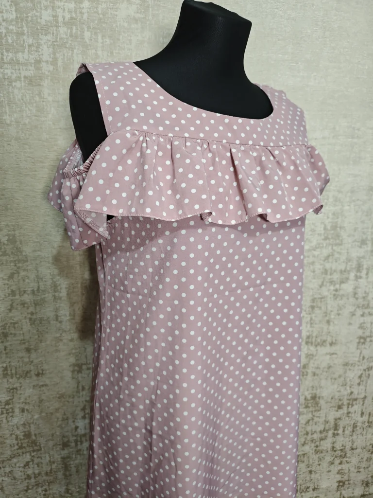 Нежное и лёгкое платье в пудрово-розовом оттенке с классическим принтом «горошек» — очень женственное и аккуратное 🤍