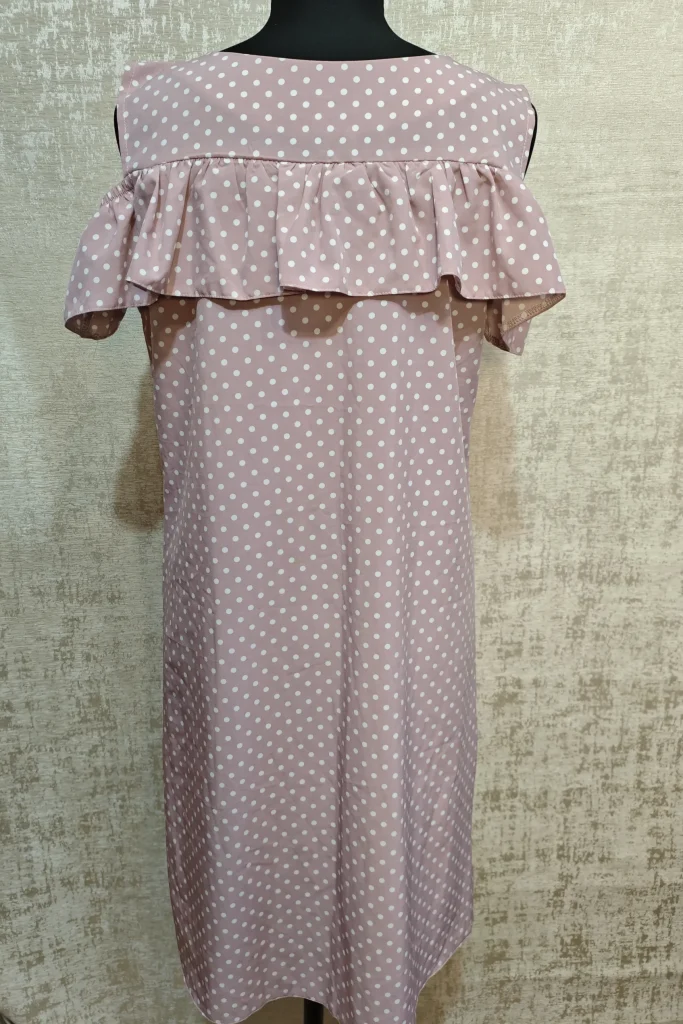 Свободный прямой крой дарит комфорт, а мягкий волан по линии груди добавляет образу романтичности и воздушности.
